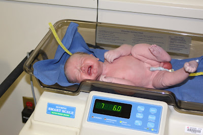 Well, yesterday Jack was two weeks old! We went to the doctor for his 2-week well visit and he weighs 7 lbs. 14 oz. (10 oz more than he did just 10 days ago!) and is 21 inches long (2 inches longer than his birth length!) He is in the 50th percentile for his weight and 85th percentile for his height, leading us to think that we might have another tall one on our hands! I can already tell that he has grown because he doesn't fit just perfectly in between that nook of my shoulder and chest anymore! :( He is sleeping much better, waking up around 2ish and then again when Thad gets ready for work around 5ish. So, overall I am sleeping and so is he, so we are pretty happy most of the time! He is still having spit up issues and some pooping problems, but Dr. Landry said she isn't concerned about it because he is absorbing all of the calories and his weight looks wonderful! She did check to make sure there was no obstruction as far as the pooping problem, and thankfully there was not! He is such a good baby and really only fusses when he needs something so we are very thankful for that! He has also starting focusing a lot more on things instead of that "blank stare." It's so nice to know that he "sees" you and we can't wait until he starts recognizing us!